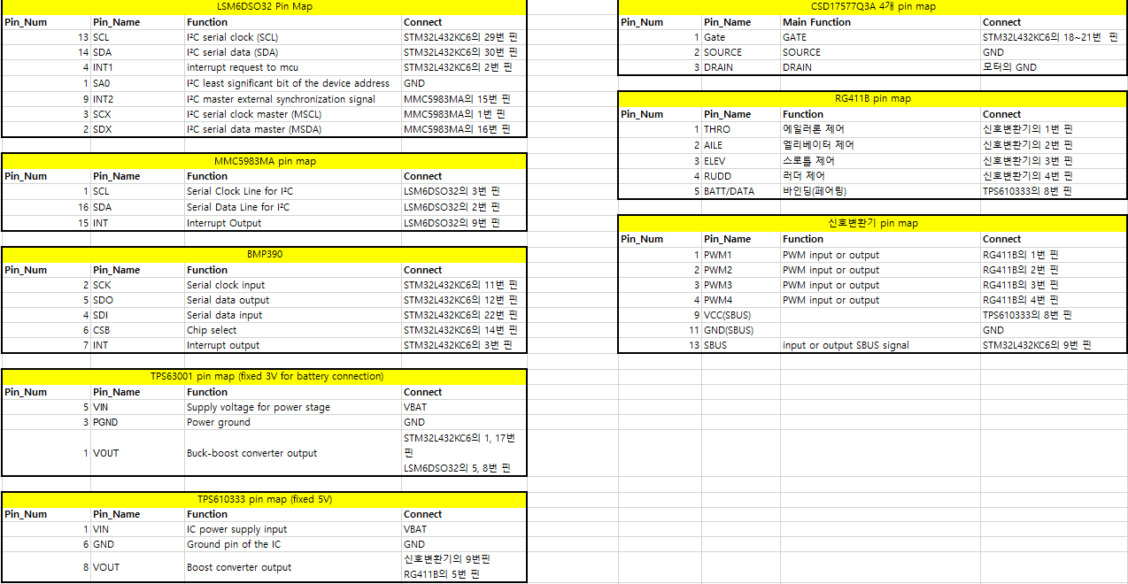 그리고 주변 컴포넌트에 대해서도 아래와 같이 각각 Pin map을 작성해보았다.